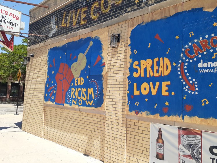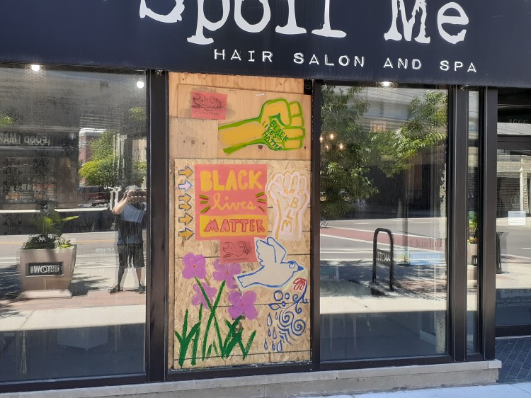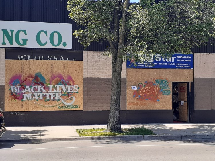 Protests for racial justice took place throughout Chicago in 2020. These photos were taken in the neighborhoods just north of Wrigley Field. Though this area saw protests and a couple of businesses were looted, I was struck by how many boarded their windows in anticipation of riots and the murals painted on the wooden panels. Perhaps many of these business owners support the Movement for Black Lives. Perhaps their sudden support was a defensive measure.